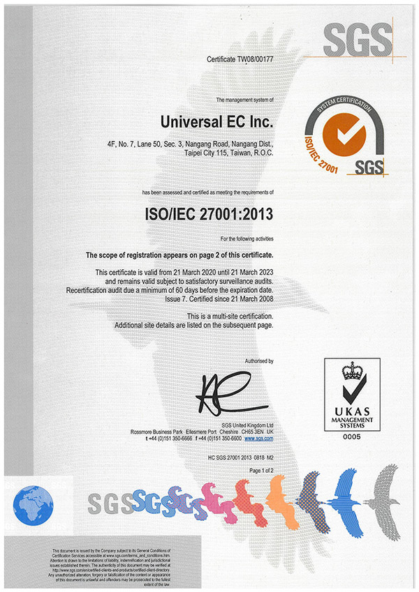 SGS資訊安全管理國際標準認證ISO/IEC 27001:2013
